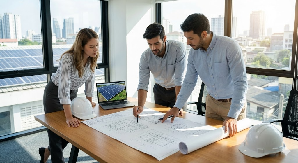 Comprehensive site analysis, solar potential studies, structural assessments, and ROI projections.